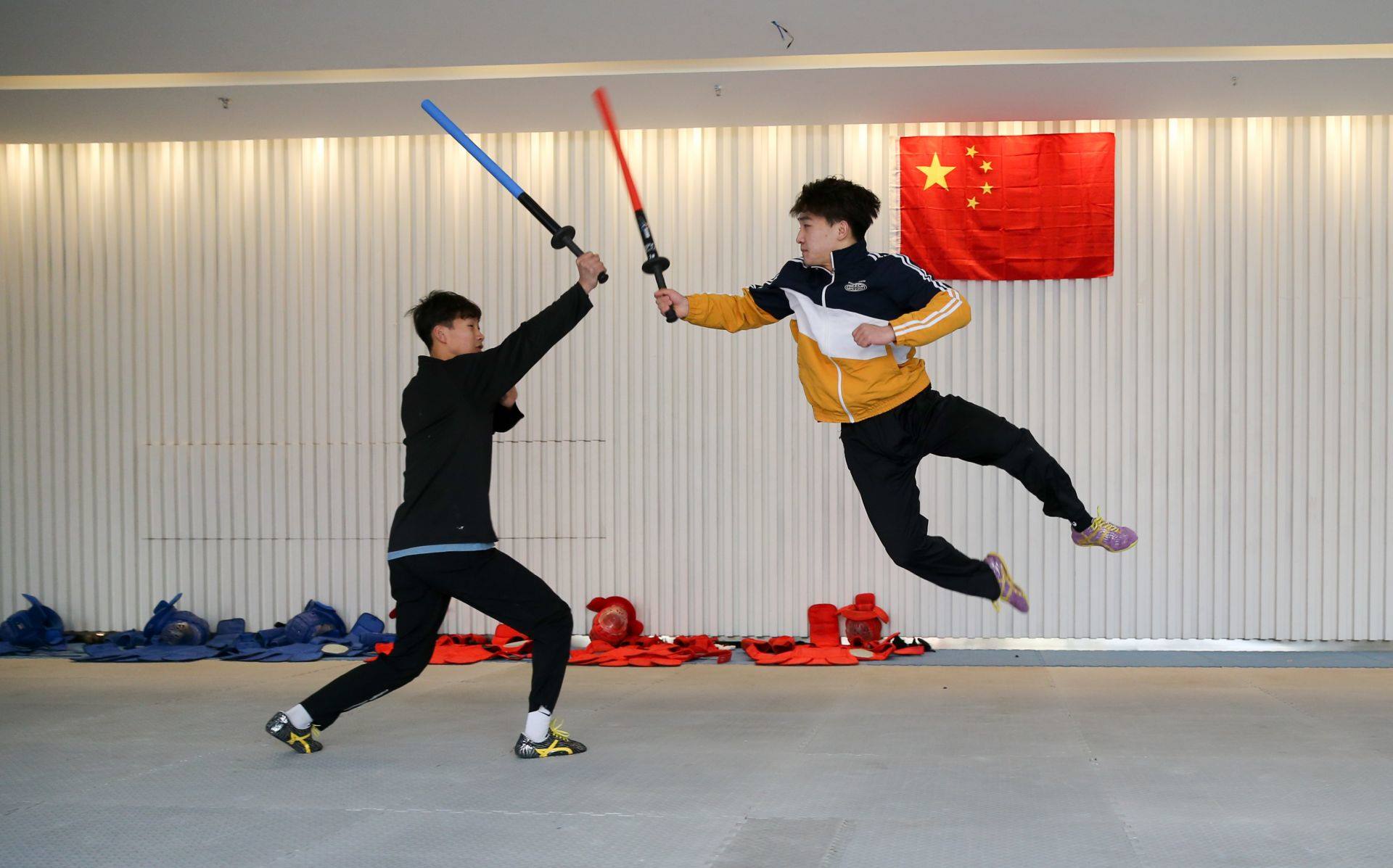 隊員手持一柄海綿包裹的短劍,時而閃躲騰挪,時而沖刺進(jìn)攻,動作行云流水。一招一式間盡顯力量和速度之美,相互對抗擊打時發(fā)出“啪啪”的聲響更是令人熱血沸騰……如果說哪一項(xiàng)運(yùn)動能夠滿足人們對俠客的終極幻想,非武術(shù)兵道莫屬。3月21日,為備戰(zhàn)全國武術(shù)兵道錦標(biāo)賽,內(nèi)蒙古唯一一支武術(shù)兵道隊在呼和浩特市體育運(yùn)動學(xué)校展開訓(xùn)練。