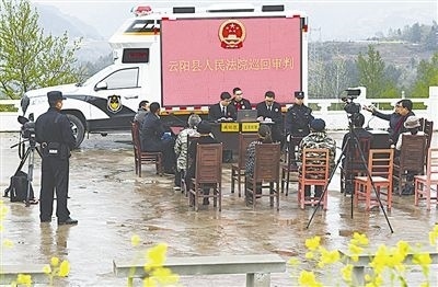 圖①:巡回審判車(chē)開(kāi)向坪東村。