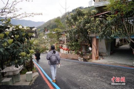游客漫步在石椅村。中新網記者 劉湃 攝