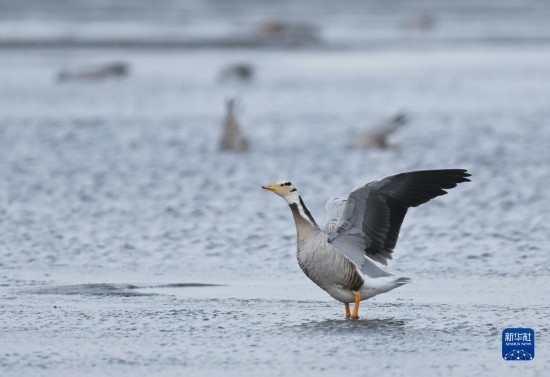 這是4月14日在青海湖邊拍攝的斑頭雁。