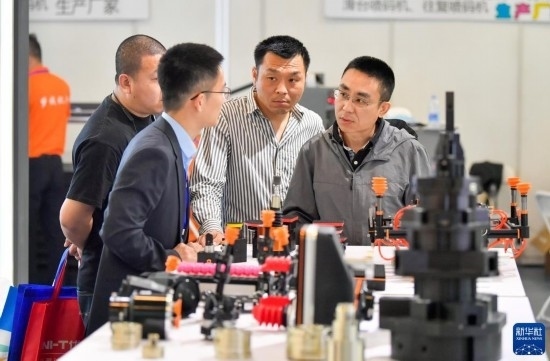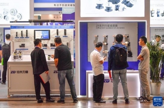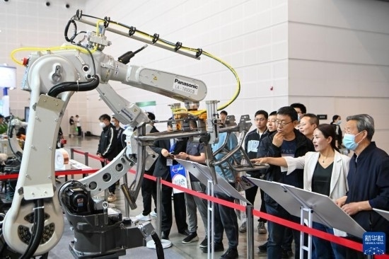 5月8日,在國(guó)家會(huì)展中心(天津),觀眾參觀展會(huì)上展出的工業(yè)設(shè)備。