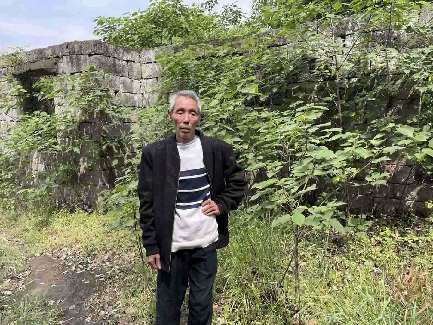 ↑馮必全身后是其已垮塌的房子