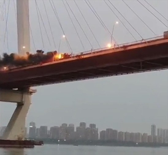 ·大貨車起火司機(jī)不畏危險(xiǎn)駛離大橋,公交司機(jī)、消防聯(lián)手救援。