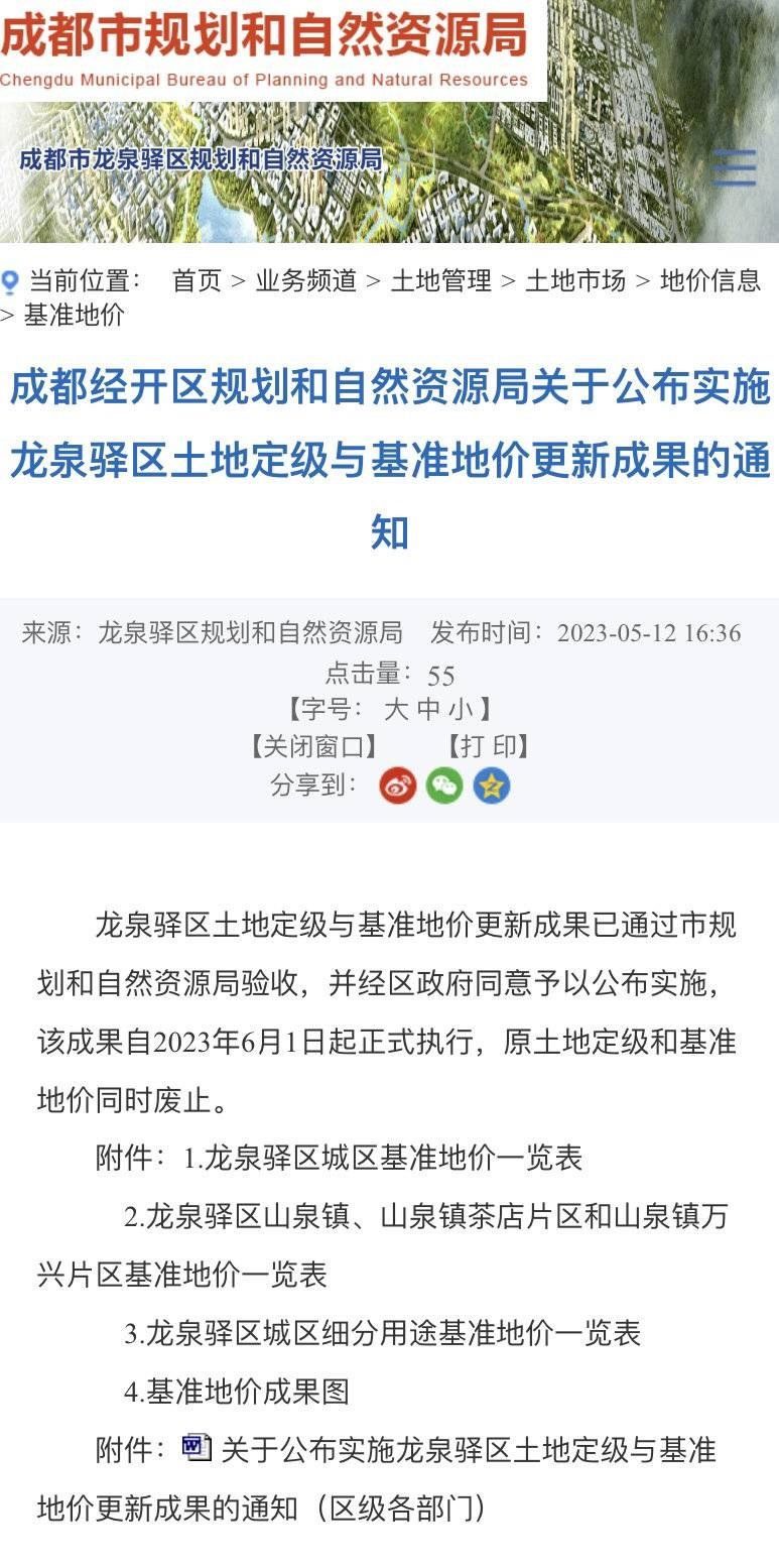 據(jù)悉,成都經(jīng)開區(qū)規(guī)劃和自然資源局門戶網(wǎng)站于2023年5月12日發(fā)布了龍泉驛區(qū)土地定級(jí)與基準(zhǔn)地價(jià)更新成果,此成果嚴(yán)格按照《四川省國(guó)土資源廳辦公室轉(zhuǎn)發(fā)〈國(guó)土資源部辦公廳關(guān)于加強(qiáng)公示地價(jià)體系建設(shè)和管理有關(guān)問(wèn)題的通知〉的通知》(川國(guó)土資辦發(fā)〔2017〕33號(hào))文件要求,經(jīng)龍泉驛區(qū)人民政府批準(zhǔn)后對(duì)外公布,該成果主要內(nèi)容為龍泉驛區(qū)城鎮(zhèn)國(guó)有建設(shè)用地使用權(quán)不同用途評(píng)估的平均價(jià)格,并未標(biāo)注“迪士尼預(yù)留用地”相關(guān)內(nèi)容。