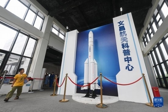 游客在位于海南省文昌市的文昌航天科普中心參觀游覽(5月14日攝)。
