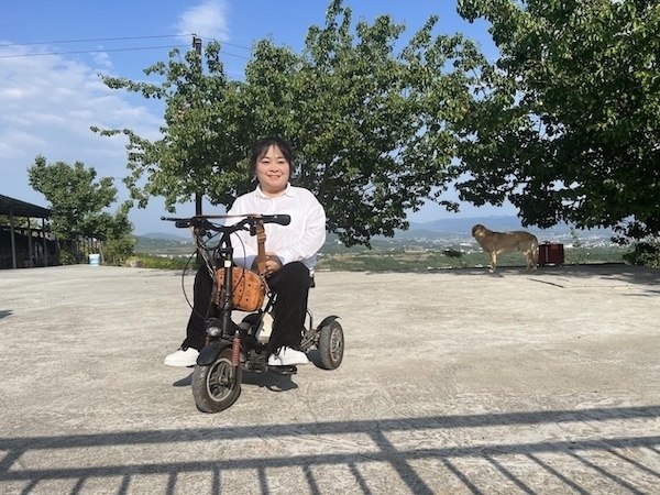 雖然每天需要在輪椅上生活,但李丹并不受限于此。因身體原因無法到學(xué)校讀書,她就在家自學(xué),每天翻字典,一個字一個字地去記;銷售有問題,12歲時她就讓父親把自己帶到菜市場,用真誠的微笑和陌生人拉近距離,打開銷路;為給桃子設(shè)計獨一無二的包裝,與漢濱區(qū)殘聯(lián)溝通后,她騎著電動輪椅坐高鐵前往西安學(xué)習(xí)攝影和畫畫;山路陡峭,輪椅不方便上下山,她就去考了C5駕照,免去父親背她走路的辛勞。面對疾病的糾纏,李丹始終保持積極的心態(tài):“我希望自己的人生是不斷突破的?!?/p>