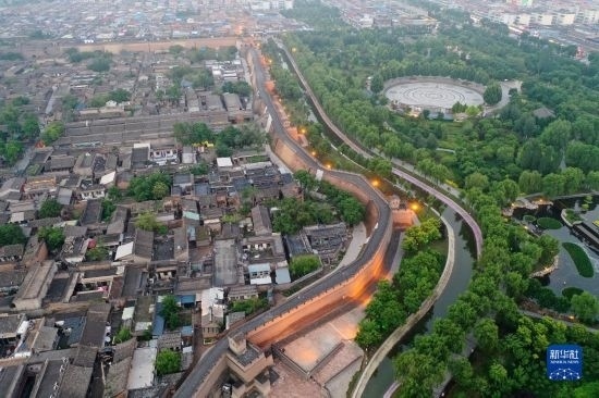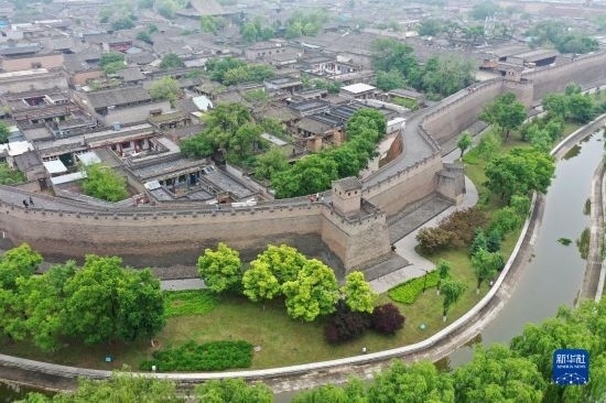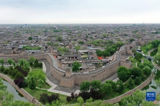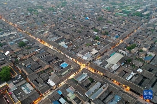 平遙古城一角(5月30日攝,無人機照片)。