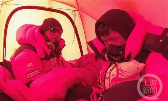 當(dāng)?shù)貢r(shí)間5月18日晚8點(diǎn),在珠峰海拔8450米處,范江濤發(fā)現(xiàn)了一名倒地登山者——右手沒(méi)有手套,已凍得發(fā)黑,左手只有一只抓絨手套;身旁沒(méi)有其他人。范江濤猜想,這是一名被夏爾巴放棄救治的攀登者。經(jīng)查看,其氧氣已用完,臉部已覆蓋薄冰,手已凍傷,生命體征微弱。