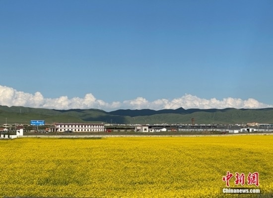 行駛途中,微風送來陣陣清涼。從車窗向外望去,高低起伏的沙丘已被樟子松、側柏覆蓋,披上了片片新綠,間或有盛開的黃色檸條花點綴其間,如繁星點點裝扮著這片土地。
