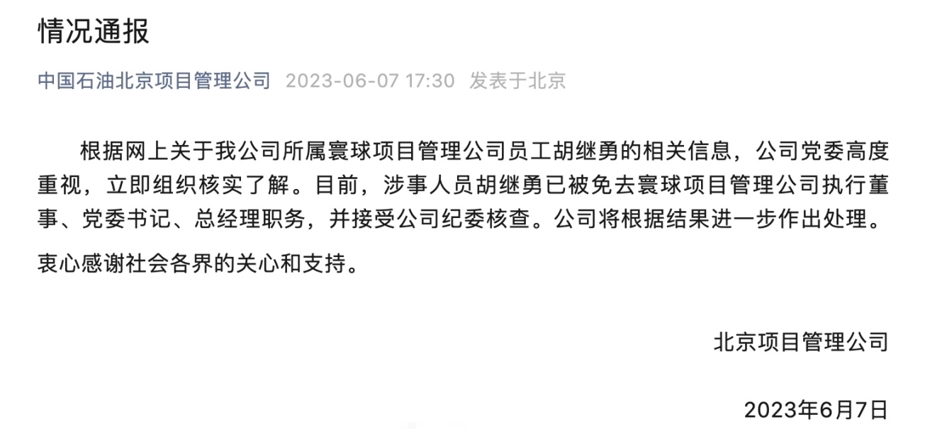 ·國企領(lǐng)導(dǎo)與異性親密牽手逛街被拍,中石油下屬公司回應(yīng):已免職。