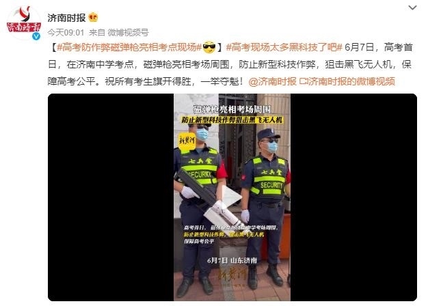 ·高考防作弊磁彈槍亮相山東濟(jì)南考點現(xiàn)場:防止新型科技作弊,狙擊黑飛無人機(jī)。