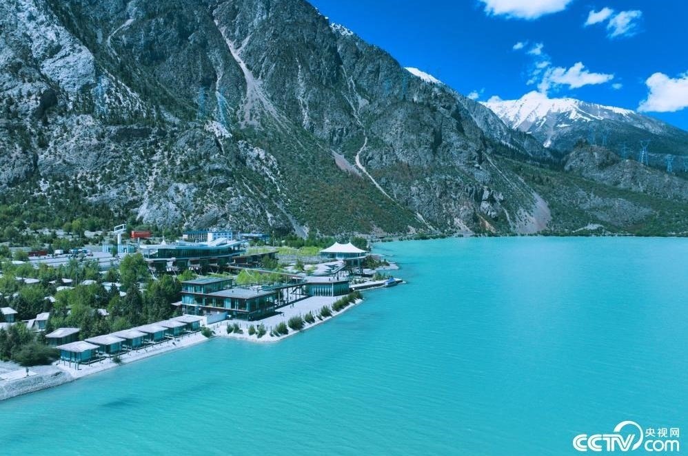西藏昌都,然烏湖與雪山相映成景,湖面碧藍(lán),氣勢壯闊。