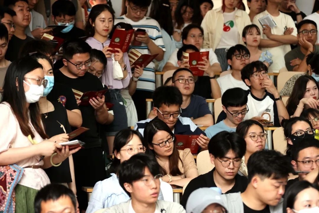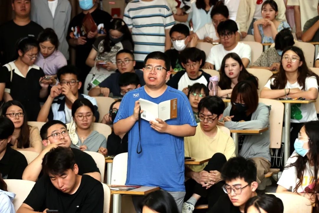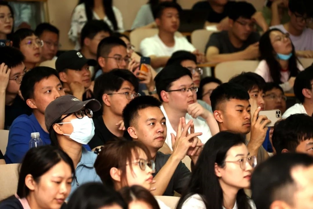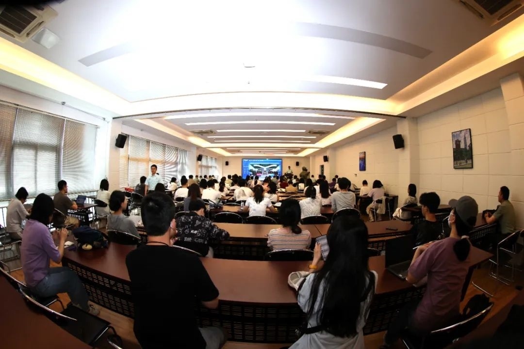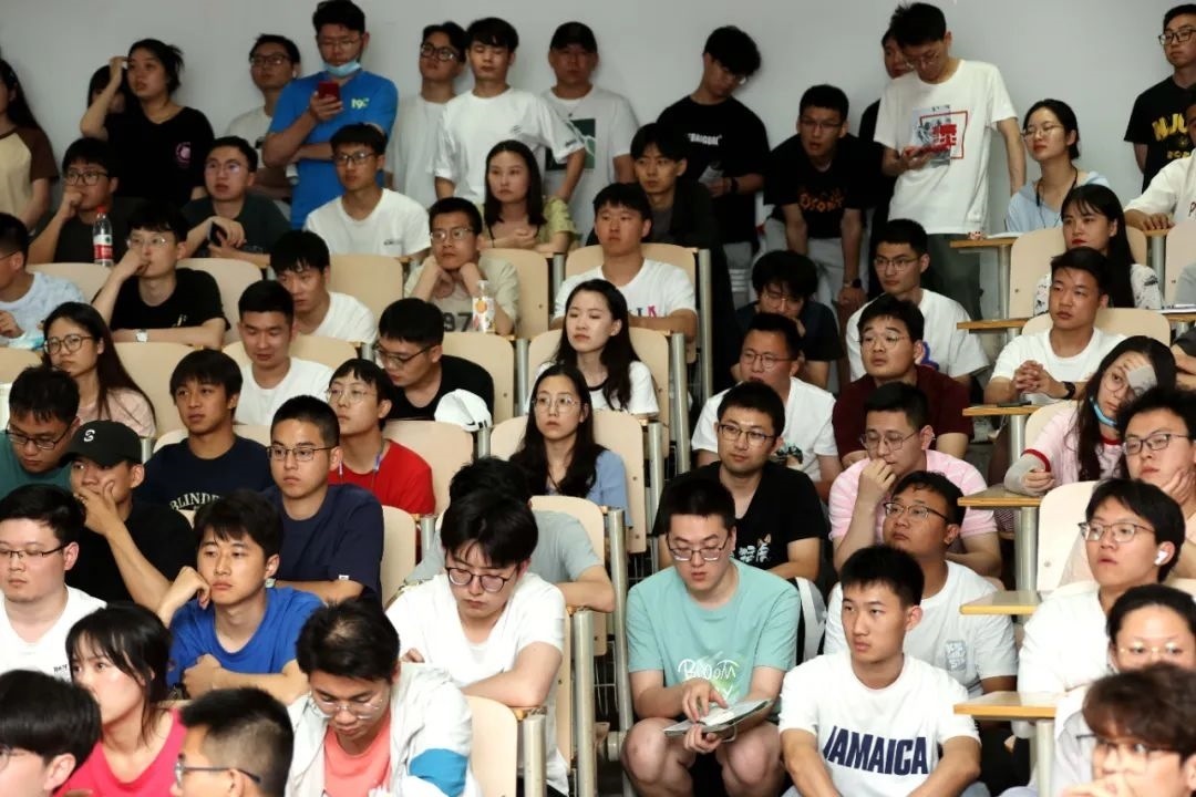 活動中,盡管教室內(nèi)溫度很高,可沒有一名學(xué)生中途離開。一名站在過道處聽講的學(xué)生差點暈倒,工作人員把他扶到空調(diào)處休息了一會,感覺好點后,他又繼續(xù)站在人群中聽講。