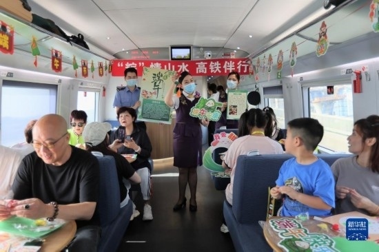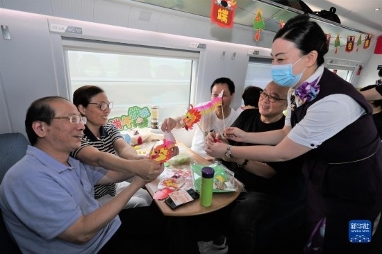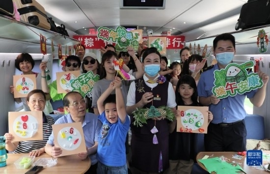 端午節(jié)前夕,鐵路上??瓦\(yùn)段在列車上邀請(qǐng)旅客參加端午民俗活動(dòng),迎接端午佳節(jié)。