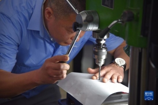 6月27日,技術工人展示鉆A4紙絕活。