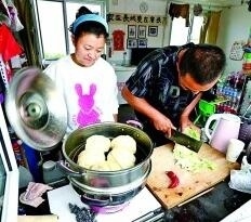 長城文保員郝中華(右)和妻子霍春玲在家中準(zhǔn)備午飯。齊波攝