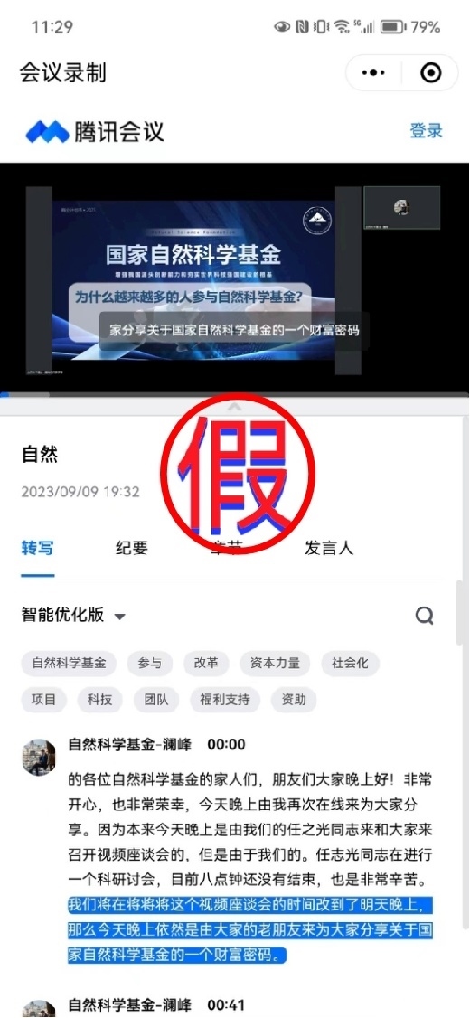 但近日,自然科學基金委陸續(xù)又收到群眾舉報,不法分子仍通過變換APP下載網(wǎng)址,召開聲稱有自然科學基金委工作人員到會宣講的分享會等方式進行虛假宣傳推廣,欺詐誘導社會公眾參與投資,企圖行騙牟利。這一非法行為嚴重侵犯了社會公眾合法權(quán)益,損害了國家自然科學基金的公信力。為此,我單位再次嚴正聲明如下: