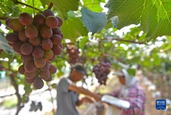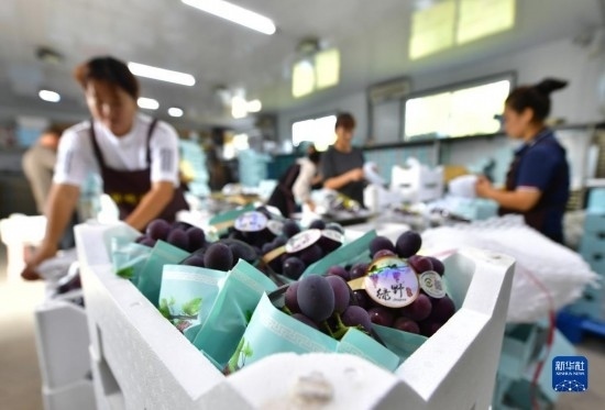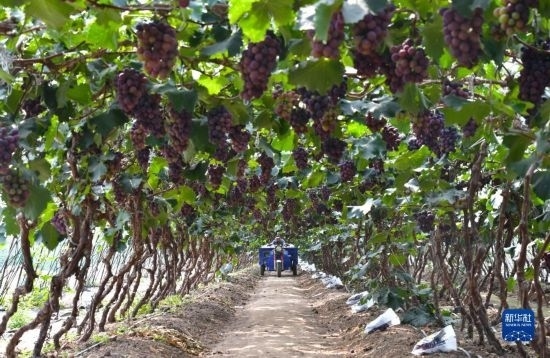 近日,遼寧省燈塔市種植的遼峰葡萄喜迎豐收。燈塔市出產(chǎn)的遼峰葡萄遠近聞名,目前種植面積約1萬畝。當?shù)匾研纬善咸雅嘤⒎N植、銷售、倉儲、加工相關(guān)產(chǎn)業(yè)鏈,葡萄是當?shù)剞r(nóng)民致富增收的特色產(chǎn)業(yè)。