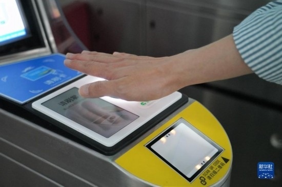 “刷掌”乘地鐵 5月21日,乘客在北京大興機場線草橋站刷掌過閘。當日,......