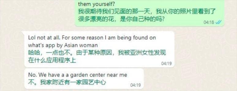例如,在“聊天范例”中,詐騙人員偽裝的女性詢問對(duì)方:“我從你的照片里看到了很多漂亮的花,是你自己種的嗎?”張先生說,其目的就是想判斷對(duì)方的居住環(huán)境。
