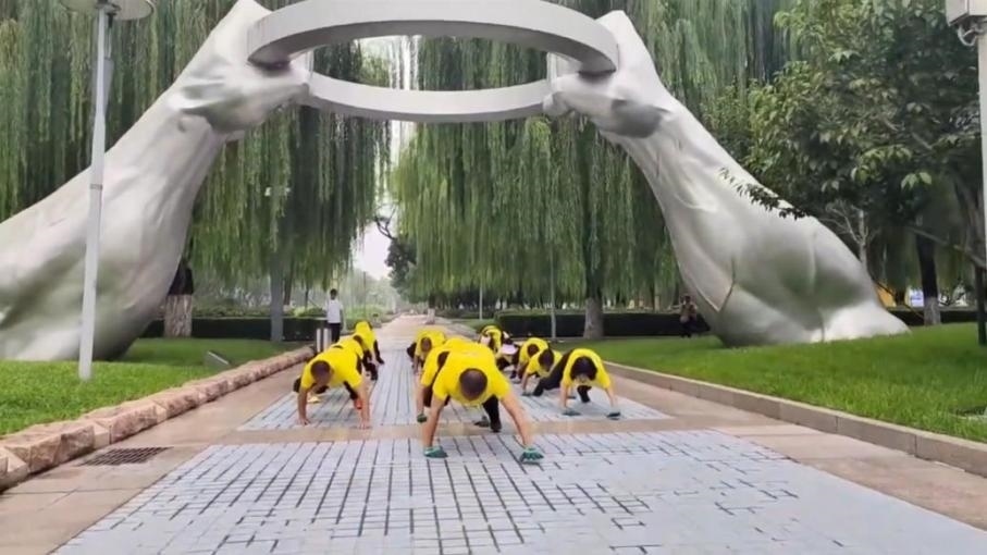 ·男子帶數(shù)十人團(tuán)隊(duì)在公園鱷魚爬:可鍛煉全身,越來(lái)越多的人加入。