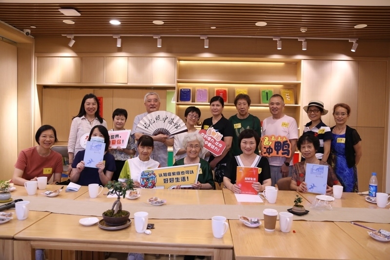 她希望能給他們提供彼此支持、交流經(jīng)驗(yàn)的社交平臺(tái)。而她也漸漸發(fā)現(xiàn)最了解家屬需求的是他們自己。為什么不能由家屬自己來決定討論什么呢?于是,2020年,汪達(dá)民與顧春玲一拍即合,在延續(xù)國外“記憶咖啡館”理念的基礎(chǔ)上,開創(chuàng)了本土特色的認(rèn)知癥家屬互助平臺(tái):照護(hù)茶館。畢竟,茶館就是熱鬧的、七嘴八舌的,人們來這里消遣娛樂,釋放壓力。在照護(hù)茶館里,家屬們既是掌柜也是茶客,分享各種照護(hù)信息,這也是認(rèn)知癥患者照護(hù)者們希望得以喘息的方式。