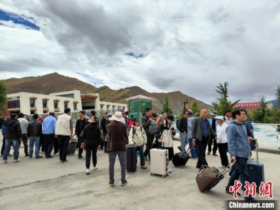 9月23日,乘坐高原復(fù)興號(hào)動(dòng)車組列車的乘客抵達(dá)拉薩火車站。江飛波 攝