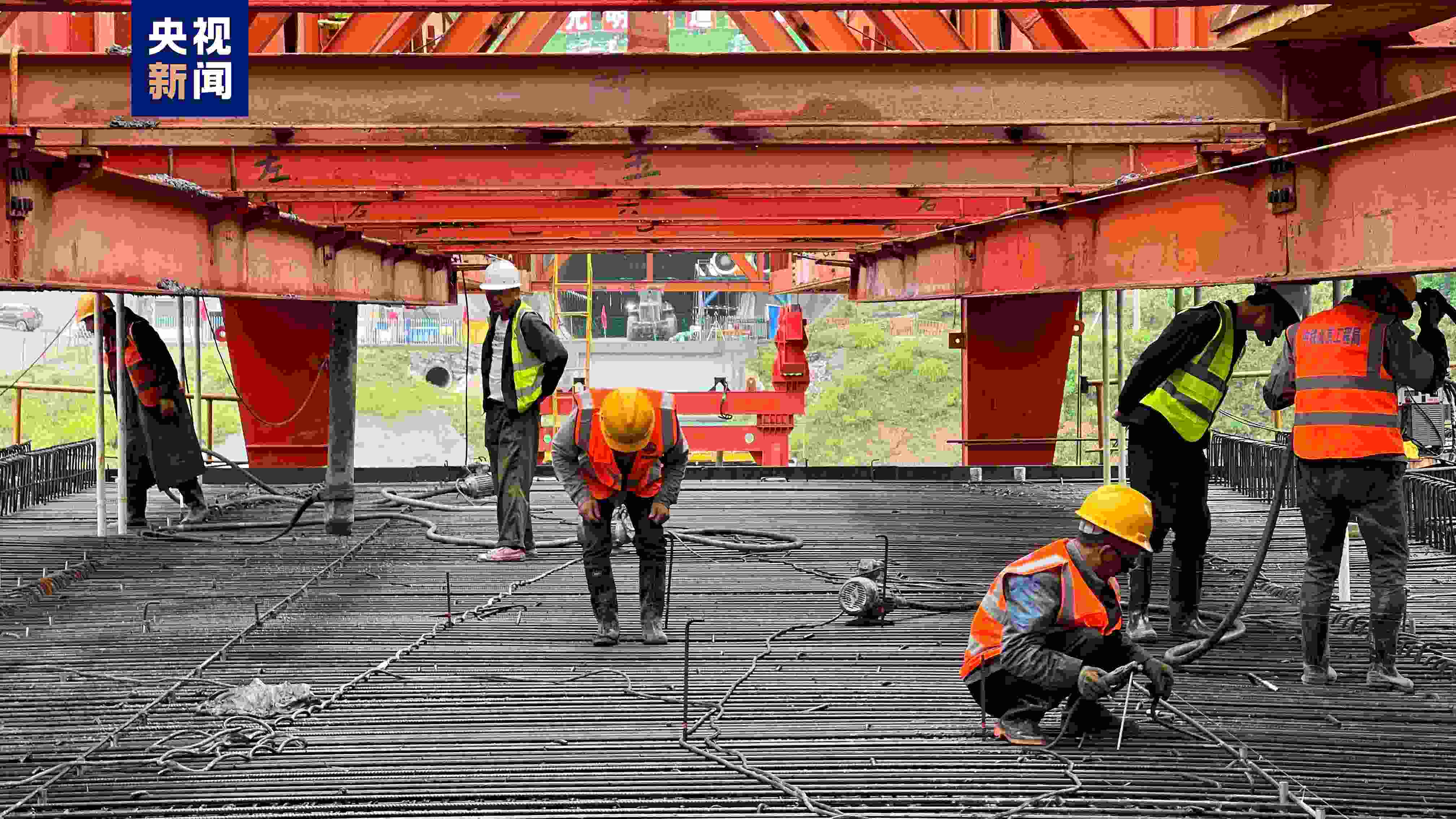 河水壩大橋位于重慶市開州區(qū)巫山鎮(zhèn)河龍村北側,橋址跨越河谷地形起伏較大,植被茂密,水面寬約12米,橋址地層巖性主要為軟塑狀粉質(zhì)黏土,層厚約2.1米,具有承載力低、壓縮性高、厚度分布不均等特點,地質(zhì)條件較為復雜。本次澆筑成功的是河水壩大橋首孔現(xiàn)澆梁,經(jīng)過施工人員連續(xù)10小時的奮戰(zhàn),孔長32m,高3.03m,重約900t的移動模架現(xiàn)澆梁順利完成混凝土澆筑。據(jù)中鐵北京工程局成達萬高鐵項目一工區(qū)經(jīng)理烏小平介紹:“河水壩大橋首孔現(xiàn)澆梁采用移動模架現(xiàn)澆法施工,制梁具有機械化程度高、靈活性強、節(jié)約人力成本、施工周期短、使用輔助設備少、重復利用性高等特點,既保證了工程質(zhì)量,又能加快施工進度,具有良好的經(jīng)濟效益。”移動模架現(xiàn)澆法施工有效解決了控制性工程長大隧道架梁機無法及時架梁的問題,縮短了整體工期,確保項目按期順利推進。