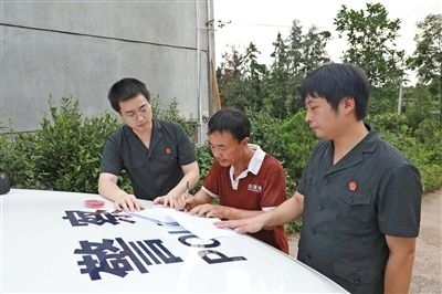 執(zhí)行干警與申請執(zhí)行人確認界址。