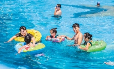 7月1日,游客在河北省遵化市娘娘莊鎮(zhèn)水上樂(lè)園戲水避暑。劉滿倉(cāng)攝(人民圖片)