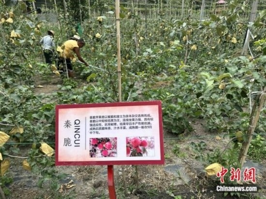 村民正在蘋果園中勞作 錢姣姣攝