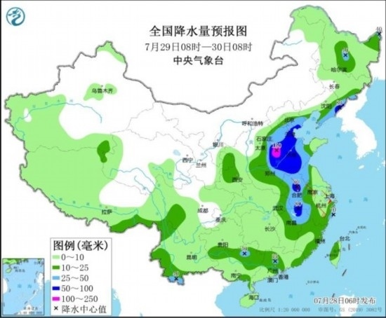 全國(guó)降水量預(yù)報(bào)圖(7月29日08時(shí)-30日08時(shí))
