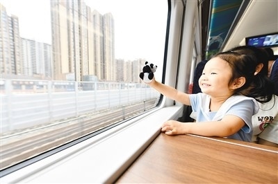 “大運號——成都都市圈旅游主題列車”上,小朋友拿著大熊貓文創(chuàng)產品。胡志強攝(人民圖片)