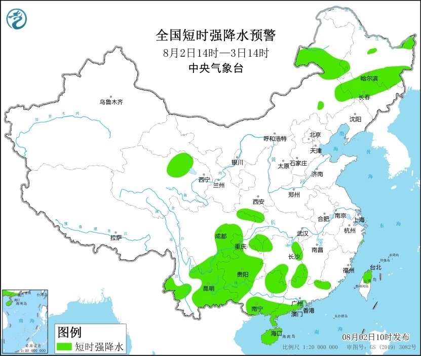 預(yù)計(jì)8月2日14時(shí)至3日14時(shí),內(nèi)蒙古東南部和中部、黑龍江東南部、吉林中西部、遼寧西北部、河北北部、臺灣島北部等地的部分地區(qū)將有8-10級雷暴大風(fēng)或冰雹天氣;內(nèi)蒙古東部、黑龍江東部和南部、吉林中西部、青海北部、陜西南部、湖南東部和西部、四川東部和南部、重慶西部和東南部、貴州大部、云南東部和西部、廣西南部和西部、廣東北部和西南部、海南島、臺灣島北部等地的部分地區(qū)將有短時(shí)強(qiáng)降水天氣,小時(shí)雨量30-50毫米,局地可達(dá)60毫米以上。