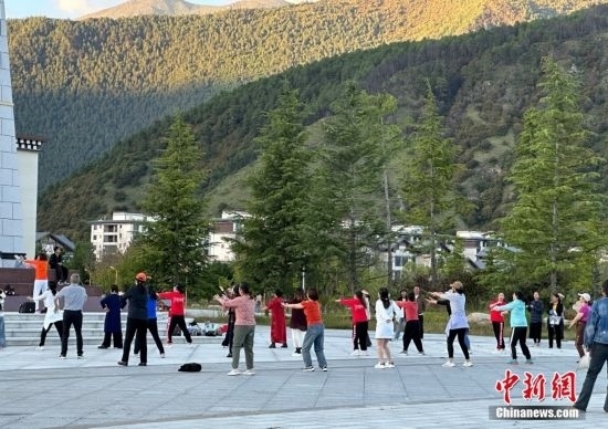 鳥(niǎo)語(yǔ)蟲(chóng)鳴、流水潺潺、綠植花海、生機(jī)盎然,晨光里、晚霞中,跑步健身、游玩賞景、唱歌跳舞、遛娃休閑……西藏林芝這座城中公園正展開(kāi)一幅幸福美好的畫(huà)卷。