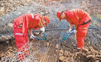 8月3日,北京門頭溝區(qū),救援隊員在234國道K315至K342段道路上清理障礙。本報記者 張武軍攝