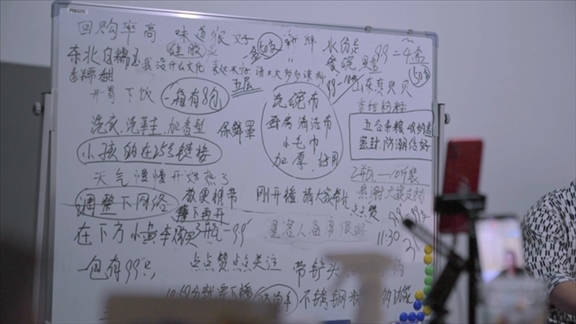 章榮高少言寡語,即便是帶貨,念完產(chǎn)品名字,極限也就加上三四個(gè)形容詞。擺在他正前方、距離不到一米的提示板上,幾乎囊括了他所有的直播“臺(tái)詞”,那是親戚幫忙寫的。葉麗鳳坐在丈夫旁邊,一言不發(fā)、臉色蒼白,有時(shí)甚至打起了瞌睡。她不識(shí)字,看不懂產(chǎn)品介紹、粉絲留言。
