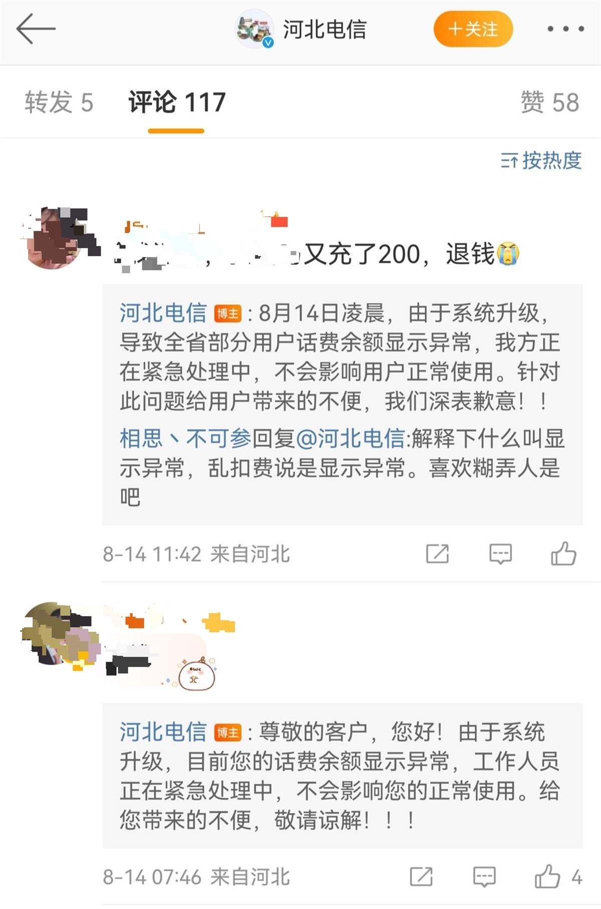 ·河北多名電信用戶稱手機(jī)莫名欠費(fèi),官方:系統(tǒng)升級導(dǎo)致,不影響通信。