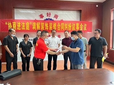田林法院在“協(xié)商進法庭”調(diào)解議事廳成功調(diào)解一起裝飾裝修合同糾紛案件。