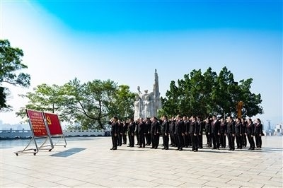 “我志愿加入中國共產(chǎn)黨,擁護黨的綱領(lǐng),遵守黨的章程……”今年7月,百色市中級人民法院黨員到百色起義革命烈士紀念碑廣場開展黨日活動,緬懷革命先烈,重溫入黨誓詞。鏗鏘的誓詞,久久回蕩在紀念碑上空,銘刻在每一個人的心頭。