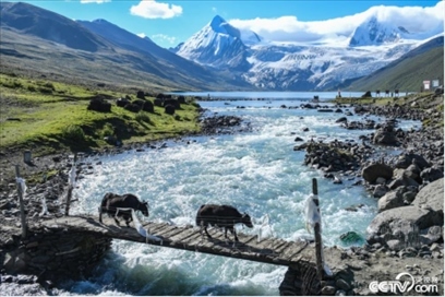 在西藏那曲市比如縣境內的薩普雪山,藍天、雪山、湖泊構成一幅美麗的生態(tài)畫卷。