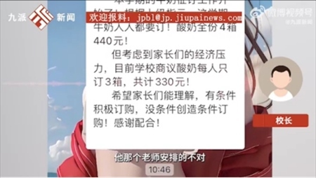 ·河南一校長回應老師疑強制學生訂酸奶:自愿原則,老師措辭不準。