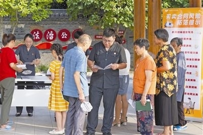 圖⑧:送法入村。圖為楓橋法庭通過設(shè)立“糾紛移動(dòng)普法站”,來到轄區(qū)各村鎮(zhèn)普法宣傳,送上普法小手冊,提醒村民用好法律知識(shí),提前防范各類風(fēng)險(xiǎn)。