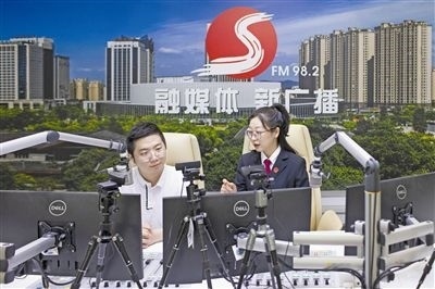 圖⑥:“云端”普法。圖為諸暨法院干警走進(jìn)諸暨市FM98.2融媒體廣播間,為線上聽眾普及法律知識(shí),并積極宣傳新時(shí)代“楓橋經(jīng)驗(yàn)”。