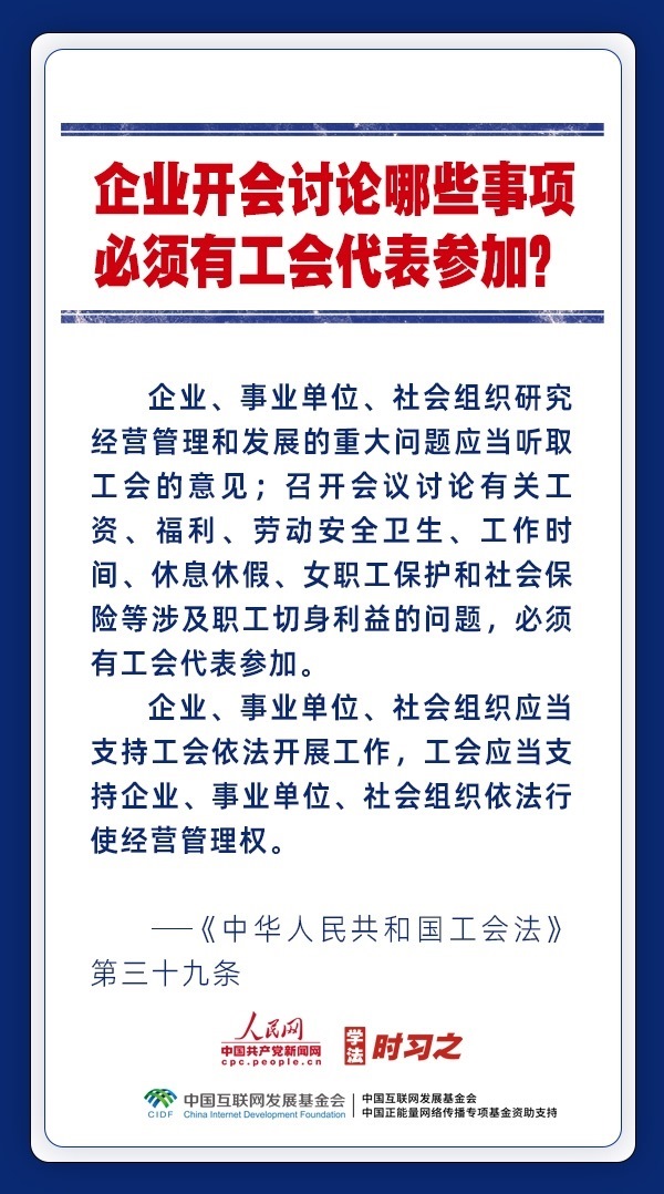 日前,中華全國總工會新一屆領導班子產(chǎn)生。黨和政府歷來重視工會的地位作用,十分注重加強工會法律制度建設,專門為廣大職工制定了《中華人民共和國工會法》。網(wǎng)約車司機、快遞員、外賣配送員能入工會嗎?產(chǎn)業(yè)工人隊伍建設改革的目標是什么?企業(yè)開會討論哪些事項必須有工會代表參加?一起來了解。