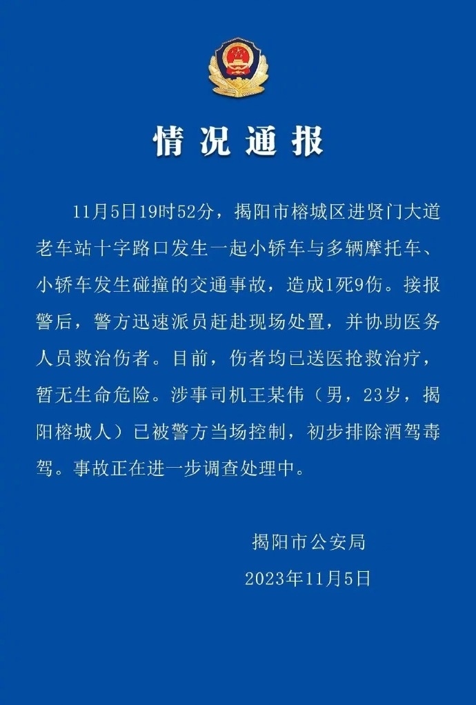 ·廣東揭陽發(fā)生多車碰撞事故,致1死9傷,涉事司機(jī)被當(dāng)場(chǎng)控制。