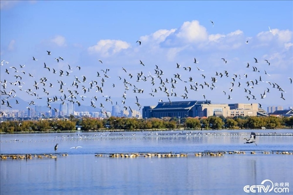 大批紅嘴鷗飛抵云南昆明,昆明已開啟觀鷗季。