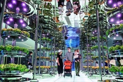 立體蔬果種植工廠、沉浸式太空栽培倉、農(nóng)業(yè)未來生活區(qū)……市民在廣東省廣州市“花城農(nóng)園”近距離觀摩現(xiàn)代農(nóng)業(yè)的新形態(tài)。韋慶翔攝