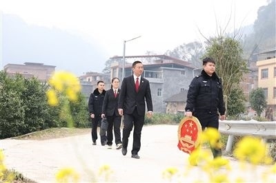 宜州區(qū)法院法官深入鄉(xiāng)村化解糾紛。