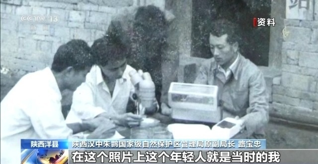 陜西漢中朱鹮國家級(jí)自然保護(hù)區(qū)管理局原副局長 路寶忠:這個(gè)照片上這個(gè)年輕人就是當(dāng)時(shí)的我。我們4人小組要在野外去觀察朱鹮,帶上望遠(yuǎn)鏡,帶上海拔儀,然后掌握朱鹮的一些活動(dòng)規(guī)律。它在什么地方活動(dòng),這個(gè)地方海拔高度有多高,然后我們要做好觀察記錄。
